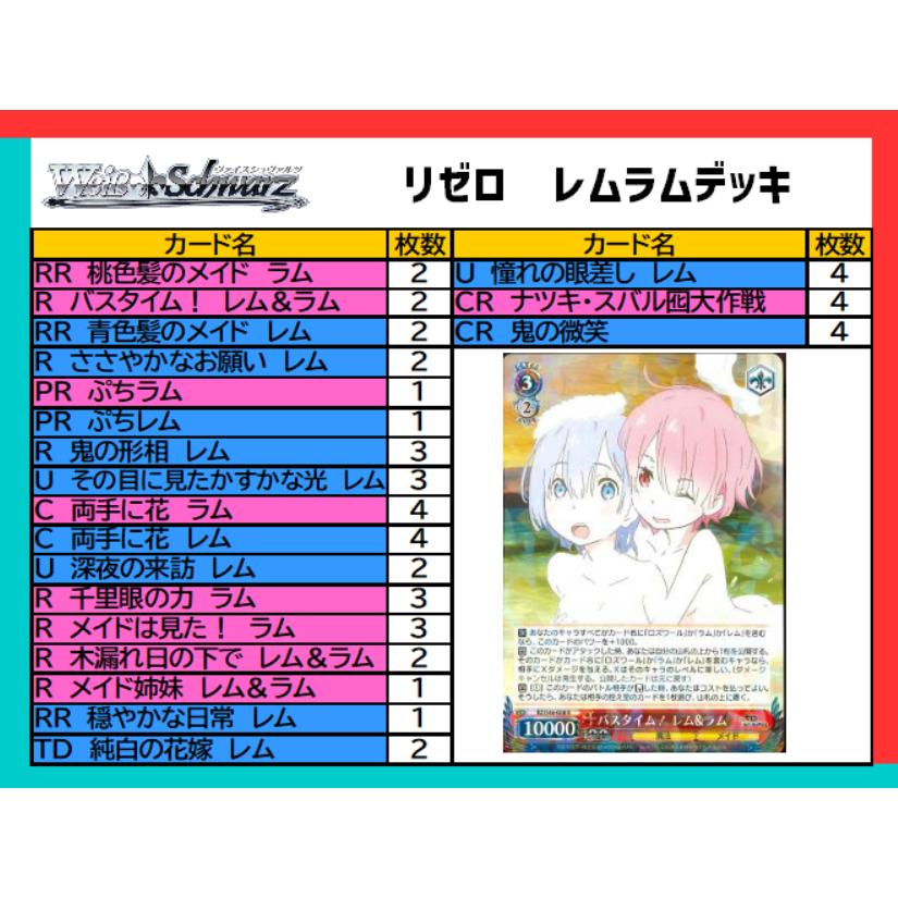 | メーカー | ヴァイスシュバルツ レム・ラム デッキ サイン入り |