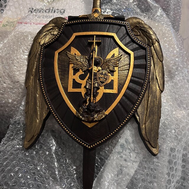 ヴィンテージ 手彫り 木製 盾 カレッジ USNavy エンブレム 英国製 3点 彫刻された木製の大天使ミカエルの盾:聖剣の壁アート - Etsy 日本